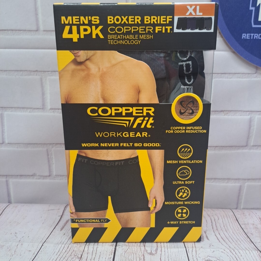 - 4PK Copper Fit Mens Performance Workgear Boxer Briefs XL 40-42 Copper Infused