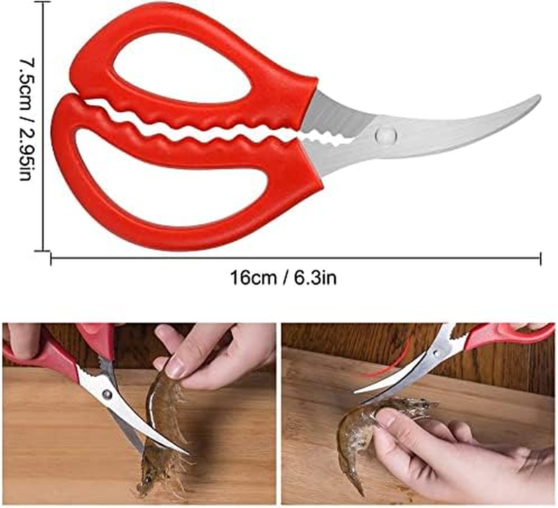Packing: 8 pieces seafood shears. Length approx 6.21 inch,width approx 2.9 inch. Red color.