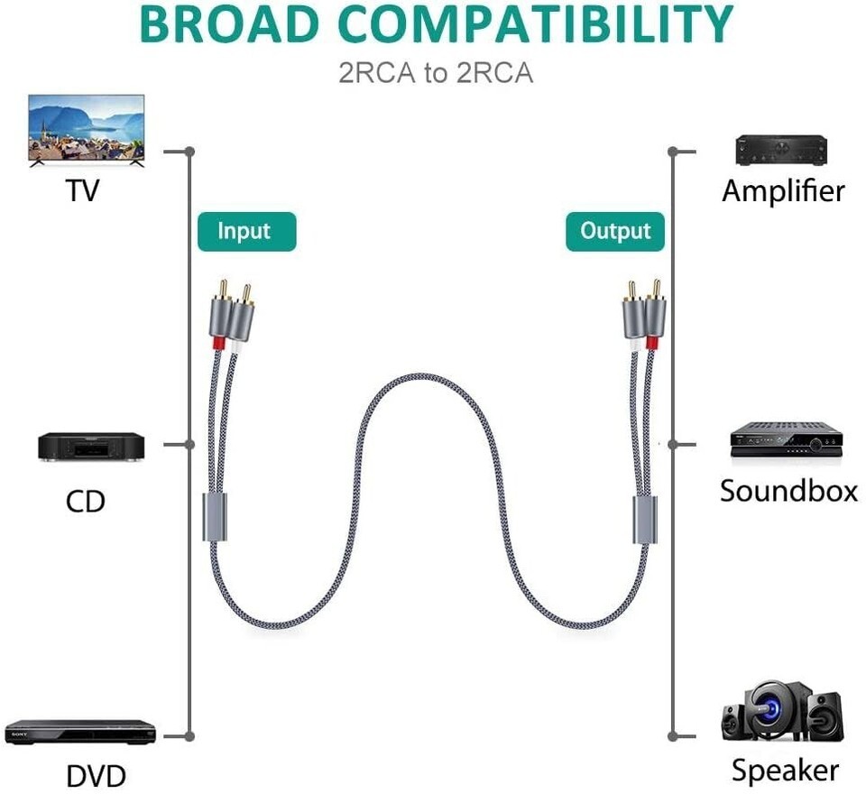 ?? Perfect Fit Broad Usage: Professional audio quality RCA cables designed for left/right audio signal transfer from home stereos, audio receivers, TVs, DVDs, amplifiers, soundboxes, car stereos, and BluRay players.