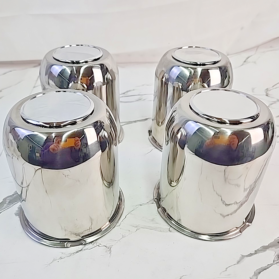 4pc 3.74" Diameter 4.5 in Height Polished Stainless Push Through Center Caps NOS