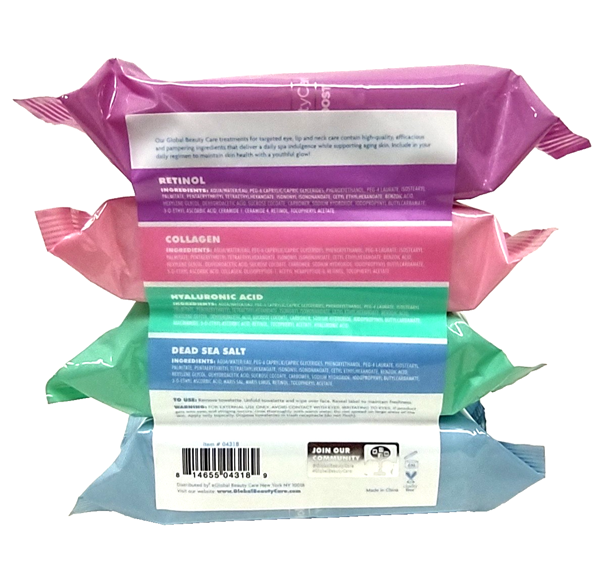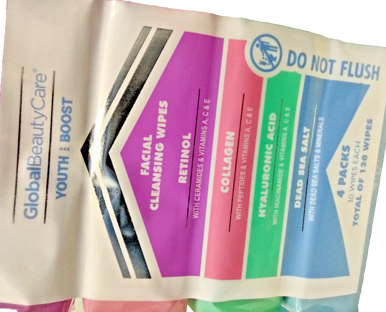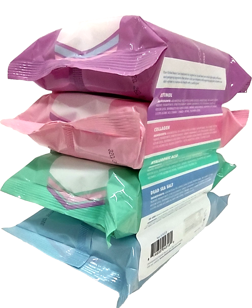 4pk Global Beauty Care Youth Boost Cleansing Facial, Collagen, Hyaluronic Acid Dead Sea Salts Minerals Wipes 30 wipes / Pack = TOTAL 120 WIPES BRAND NEW FACTORY SEALED PACKED