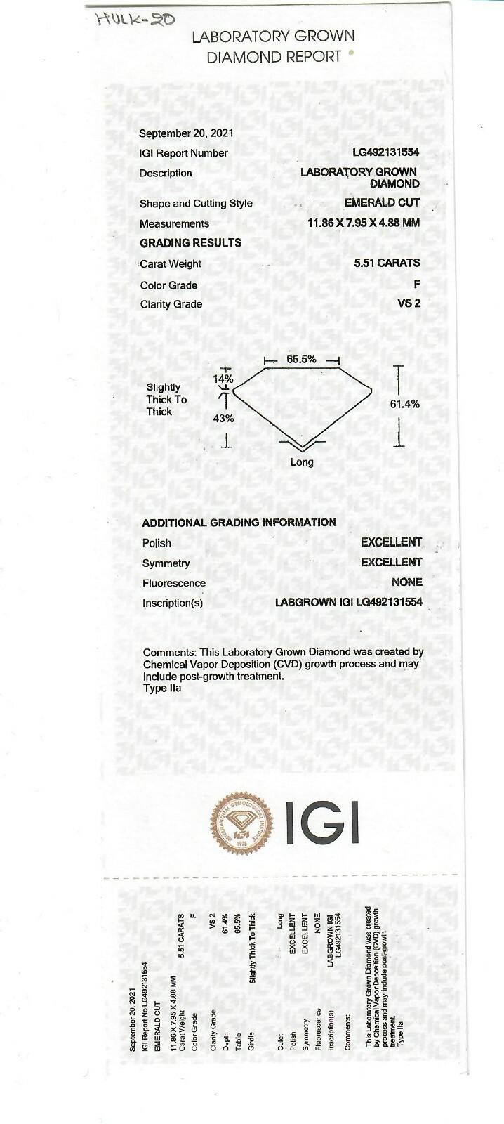 - 5.51 CT CVD Lab Grown Emerald Diamond Cut F VS2 Igi Certified- show original ...