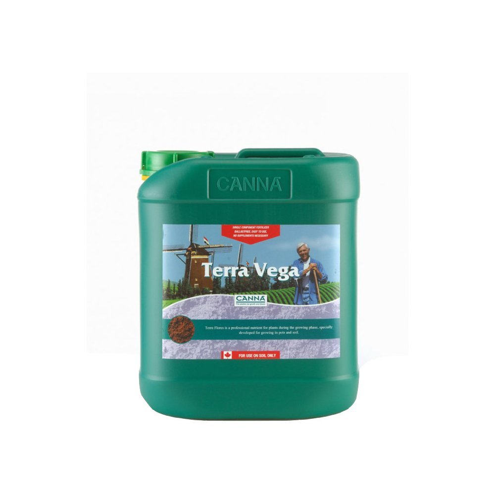 Product description: Dutch solution for growth and bloom For cultivating in soil in containers or in the ground For cultivation in soil in pots and in the ground High yields User-friendly Complete solution for the entire growing process For both indoor and outdoor cultivation No residues Environment-friendly TERRA FERTILIZERS Canna Terra fertilizers are a complete selection of high grade products, effortlessly causing explosive growth and exuberant blooming in fast-growing plants. Since their launch in 1990, Terra Vega and Terra Flores have become the most widely used fertilizers by professional and amateur growers using soil. With Canna Terra, you are guaranteed high yields, with an easy to use product and a high-quality biological end product with no toxic ballast.Canna fertilizers have a biotropic effect, they are absorbed naturally into the plants bio-system, and they create an optimal balance in the plants cells and improve its resistance. Unlike other specialized fertilizers, Terra fertilizers work quickly, are directly available for the plant and so require little energy for absorption, allowing the plant to concentrate fully on growing and blooming. For the best possible support of the plant, CANNA has developed Terra Vega for the growth phase and Terra Flores for the blooming phase. TERRA VEGA Strong, healthy growth is characterized by vital growth shoots and luxuriant root development. This is the necessary basis for high yields. Terra Vega has been developed specially to meet the plants needs in this phase. This nutrient is suitable for various types of soil, such as pre-fertilized soil, but it can also be used in low-nutrient soil or soil that has been used previously. Full absorption of nutrients and water penetration from the start of the growth are guaranteed by Terra Vegas large quantities of direct-absorption nitrogen and high-grade EDDHA iron chelates in