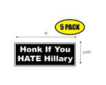 - 5 PACK 3.37"x9" HONK IF YOU HATE HILLARY Sticker Decal Humor Funny Gift BS0407