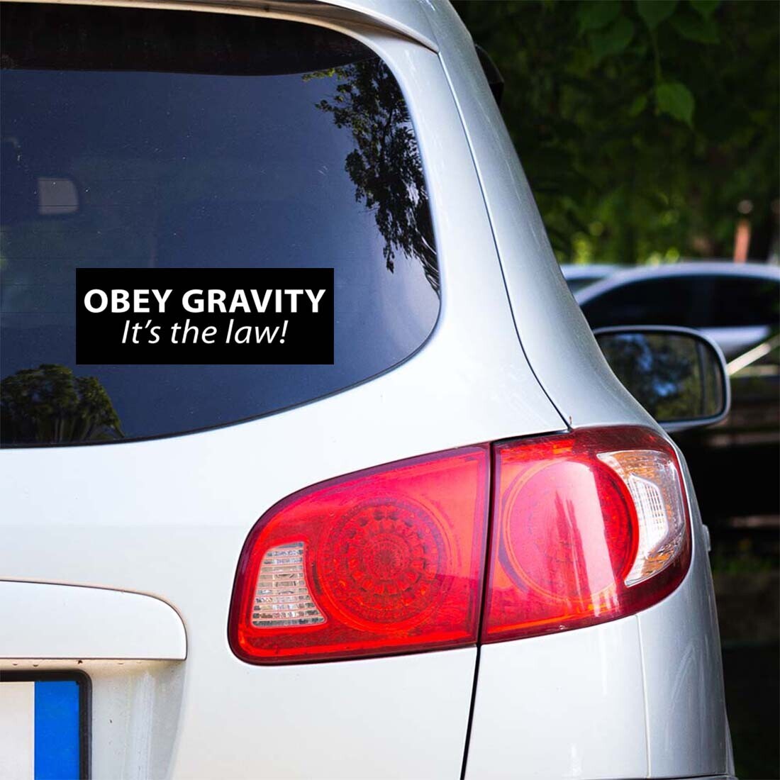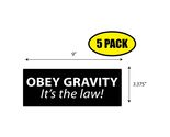 - 5 PACK 3.37"x9" OBEY GRAVITY ITS THE LAW Sticker Decal Humor Funny Gift BS0382