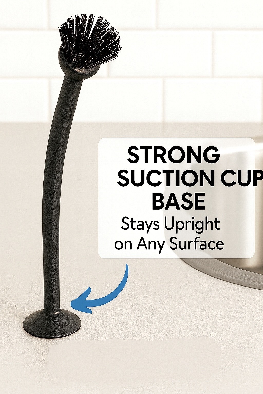 ? Upright Suction Cup Base ? Hygienic storage that keeps counters dry.