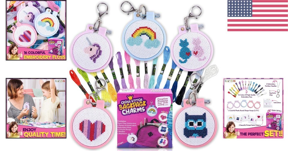 Features: With Frame,Easy to Follow Instructions,High-Quality Cotton Thread,Kid-Safe Materials,Five Pre-Printed Patterns,Suitable for Beginners,Step-by-Step Instructions,Perfect for Kids,Variety of Themed Hoops