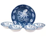 - 5-Piece Starfish Sea Shells Octopus Beach Dinner Bowl Set in Blue and White