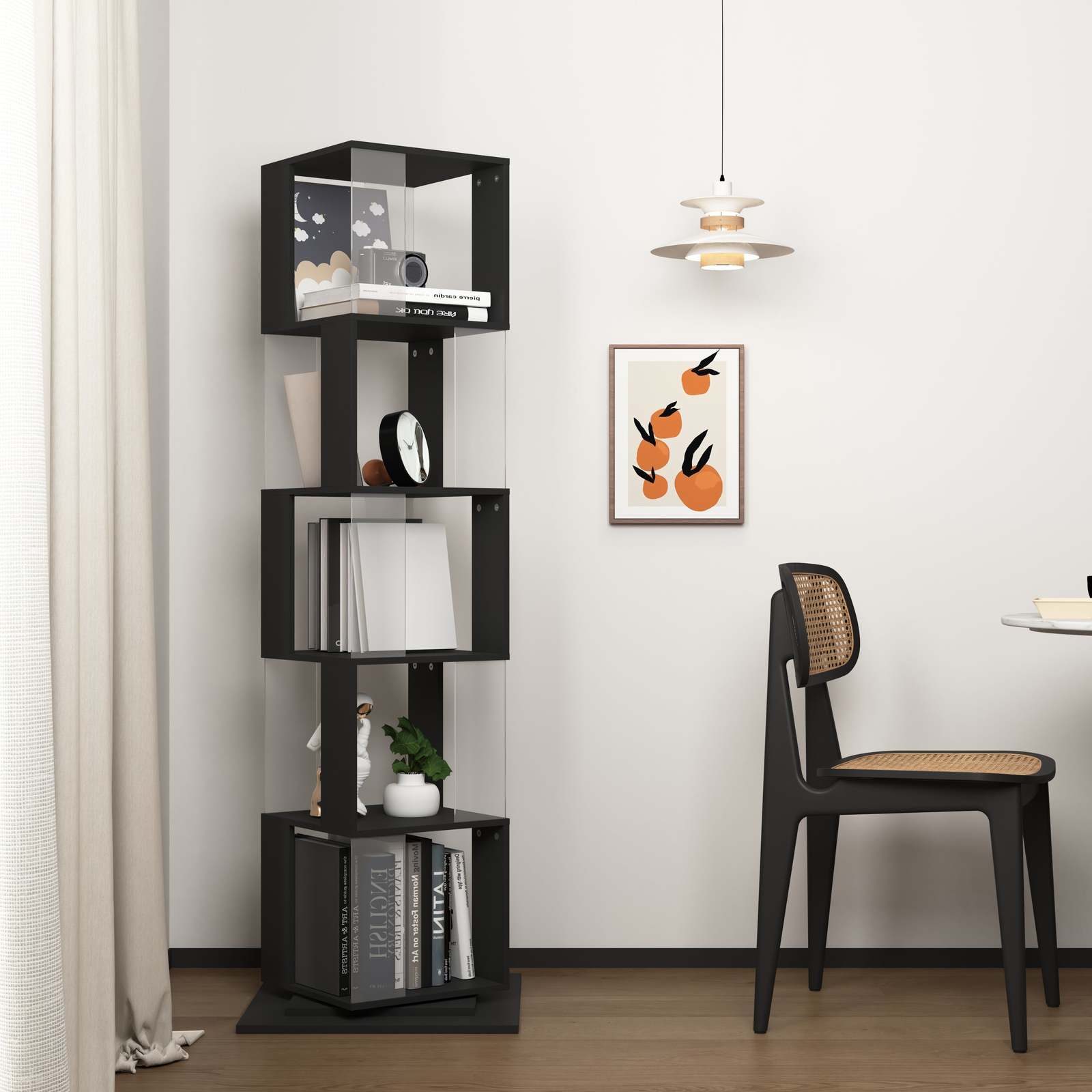 - 5-Tier Rotating Bookshelf: Floor Rack, Acrylic, Anti-Topple Base