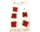 5 Vintage Buttons Red Twisted Plastic Red Knots on Gold Circle Shank 1950s MCM