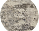 - 5' X 5' Ivory And Grey Round Abstract Power Loom Non Skid Area Rug