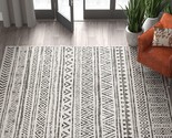 - 5 ft. x 8 ft. Black Off-White Chevron Coastal Boho Style Indoor Outdoor Area Rug