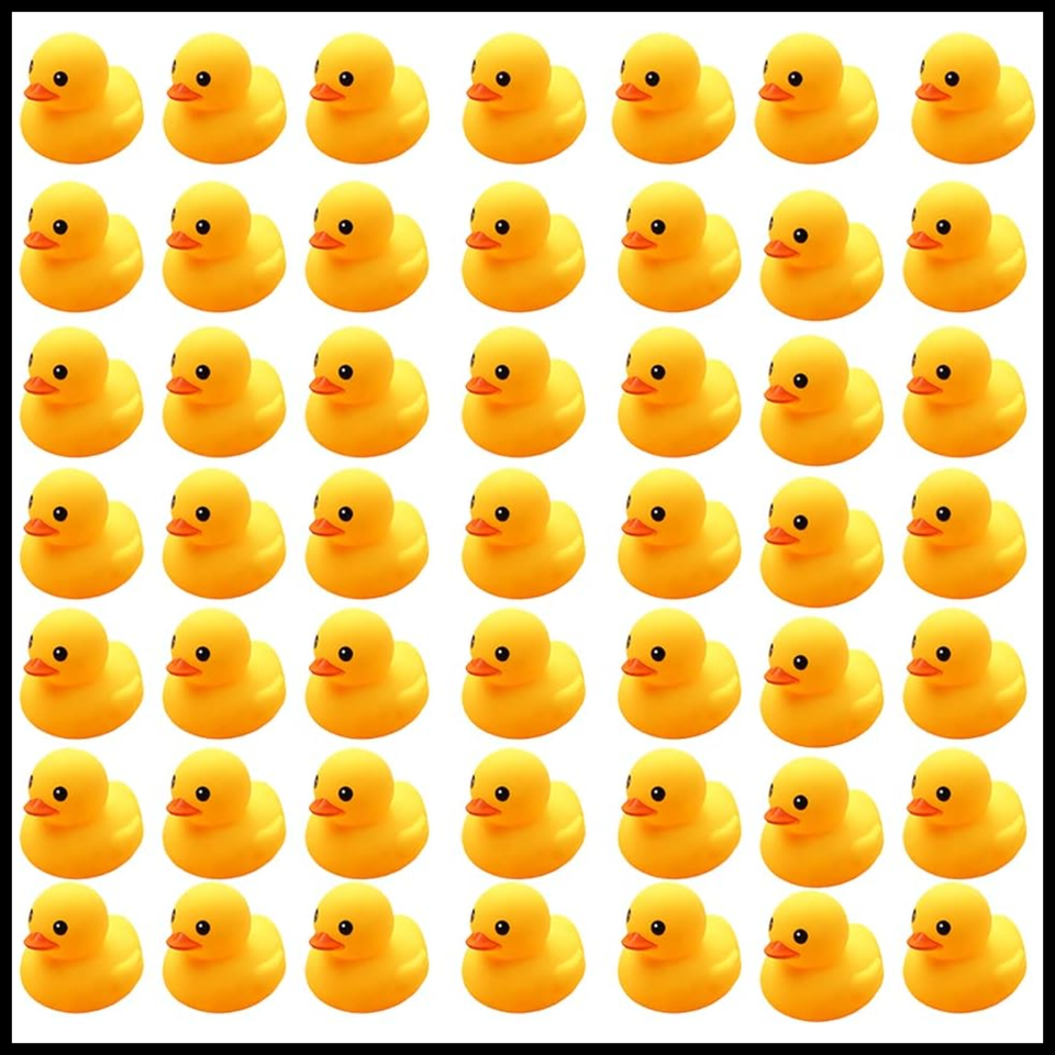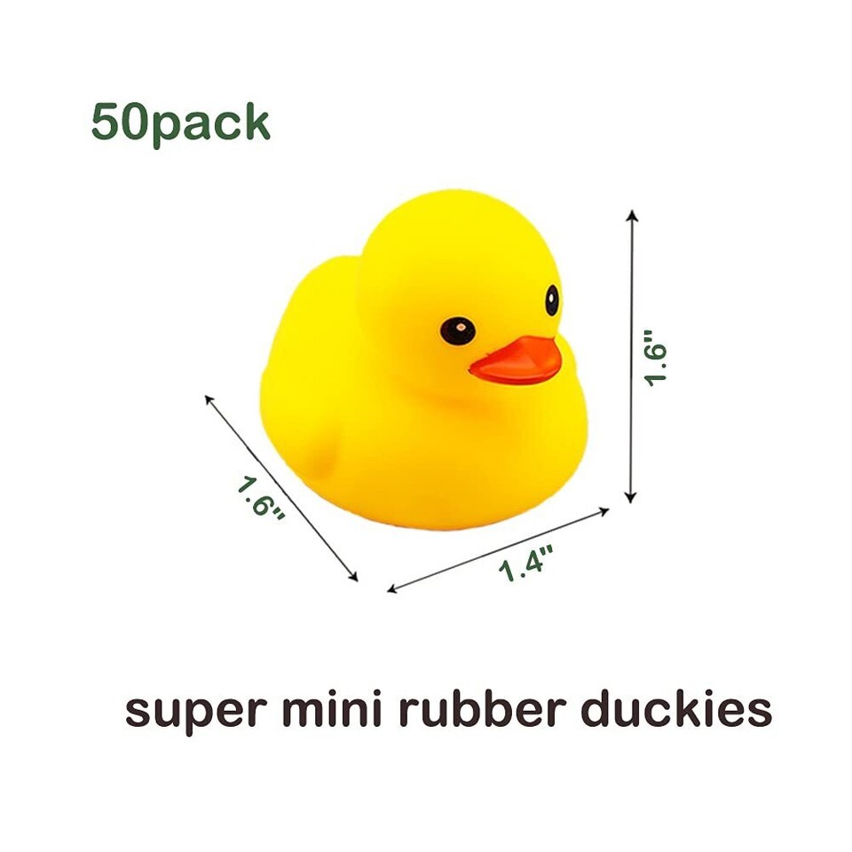 50 PCS rubber ducks bulk yellow small duckies for jeep ducking cruise kids toys Very limited stock! Order now to avoid disappointment! Fun Bath Time Companions: The ducks float upright in the water and squeak when squeezed, making bath time a blast! (Squeeze and they squeak, attracting babies with the sound!) Safe for All Ages: Made from high-quality PVC, these ducks are safe for children of all ages (perfect for babies with sensitive skin). Bright and Colorful: The ducks feature vivid colors, resembling real ducks floating on water. 50-Piece Pack: There are plenty of ducks to share with friends or use for multiple occasions. Ideal for: Bath time fun, party favors, decorations, baby showers, pranks, cake toppers, and carnival games. Specifications Material: High-Quality PVC Size: 1.6" x 1.6" x 1.4" (each duck) Quantity: 50 pcs per pack Package Includes 50 Mini Rubber Ducks Cleaning Instructions The rubber duck bath toys are not edible. Please do not put them in your mouth. Due to long-term transportation, ducks may be slightly deformed. Simply squeeze the duck to fill it with air and it will return to normal. Shipping The shipping time might be shorter than shown since the estimated delivery dates already include possible delays. We are always working hard to ensure your package arrives as soon as possible. Please understand that some factors like weather, high postal traffic, and the performance of shipping companies are outside of our control. We offer free shipping to the lower 48 states and ship within 3 business days of payment, usually sooner. We do not accept P.O. Boxes. Please provide a physical address. For shipping outside of the continental USA, we only use's Global Shipping Program. The item is shipped to KY and then sent to the rest of the world. International customers are responsible for all duties and taxes. Continue to check out in order to calculate costs for shipping the item to your country. Messages regarding's Global Shipping Program MUST be directed at EXCLUSIVELY.We ship within Three business days of payment, usually sooner. Return We offer a 30-Day Free-Return Policy on items which you are not completely satisfied with. No returns are available on items shipped outside of the USA. Payment We accept payment by veriety of payment methods such as Paypal. Please see the payment options in the checkout. Feedback We try our very best to make sure every customer is completely satisfied. If there's a problem, message us! We're happy to help. Contact Us If you have any queries, please contact us via. We usually respond within 24 hours on weekdays. Please visit our store to check out other items for sale! Thank you for shopping at our store.