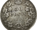 - 50 centavos de Canadá de 1894 - retrato de la laureada de la reina Victoria (...