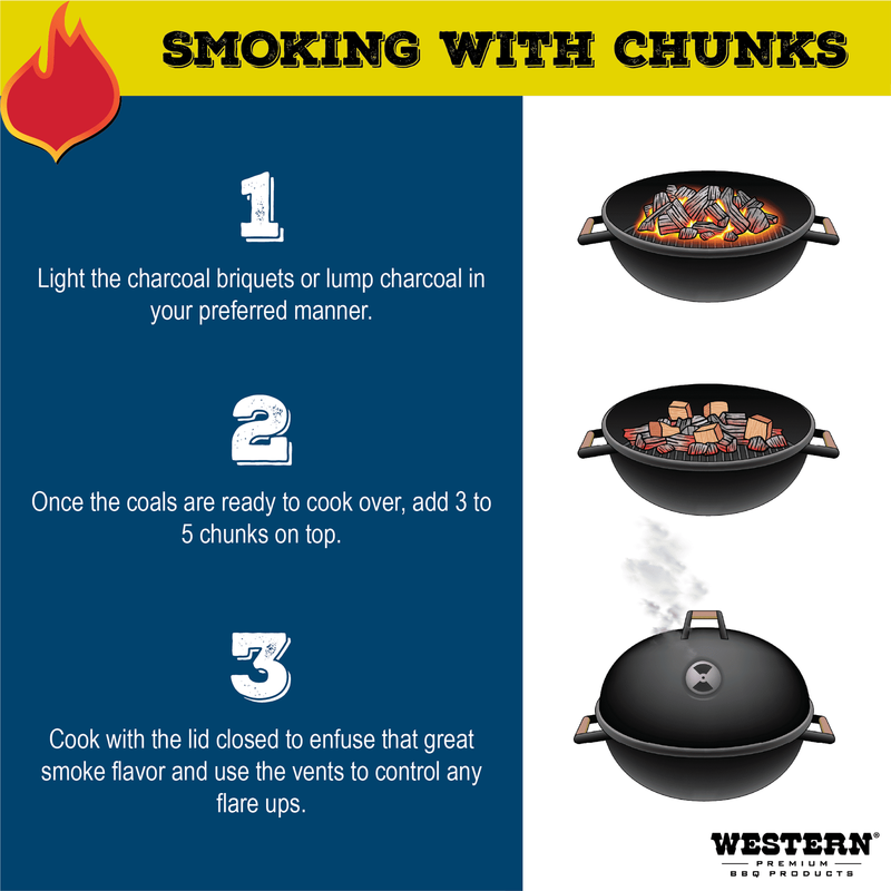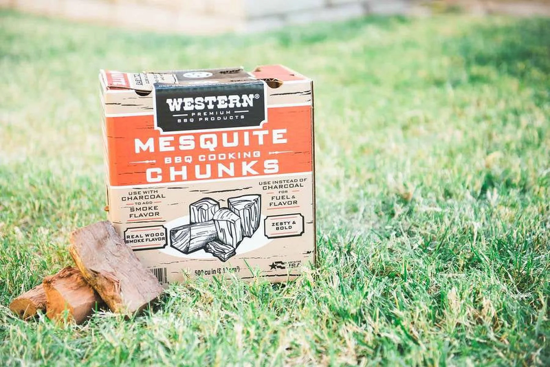 Western Premium BBQ Products Mesquite BBQ cooking wood chunks, 500 CU in (0.289 cubic foot) give a rich, distinct flavor to brisket, steak and other cuts of beef, and they also pair well with other meats such as pork and lamb. Mix Mesquite chunks with a mild flavor like Post Oak to customize your blend and flavor. You can use these wood chunks with or instead of charcoal, with kettle grills, ceramic grills or smokers.
