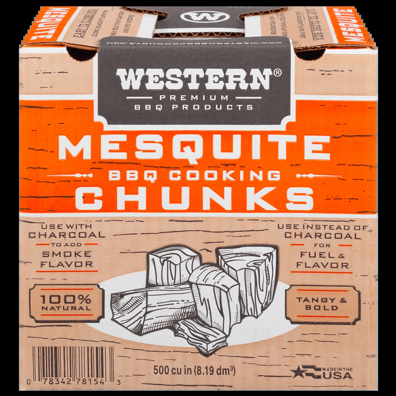 Western 500 CU IN (0.289 cubic foot) Mesquite Chunk Box CS Use with or instead of charcoal, with kettle grills, ceramic grills or smokers 100% Natural mesquite wood Tangy bold flavor