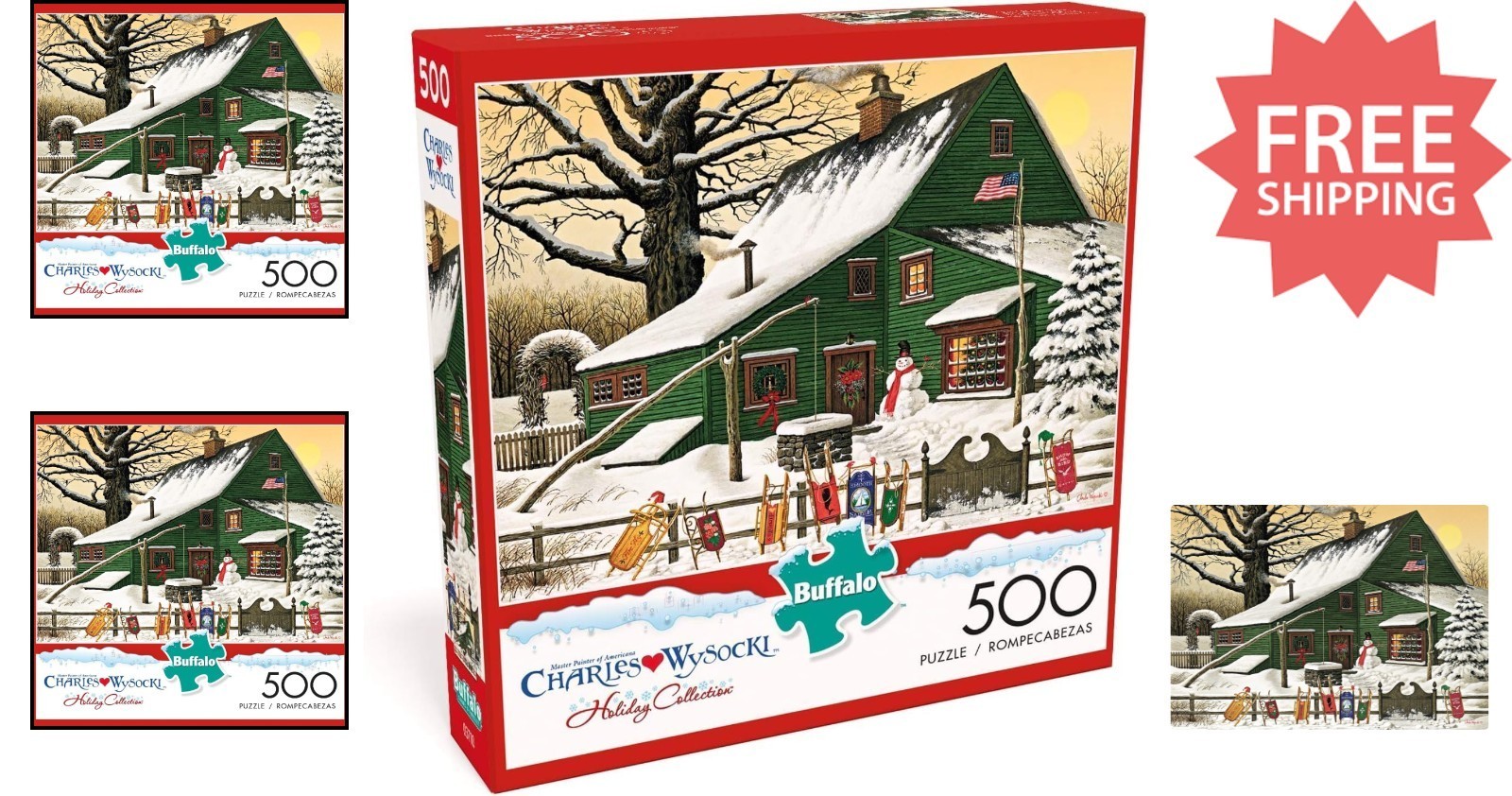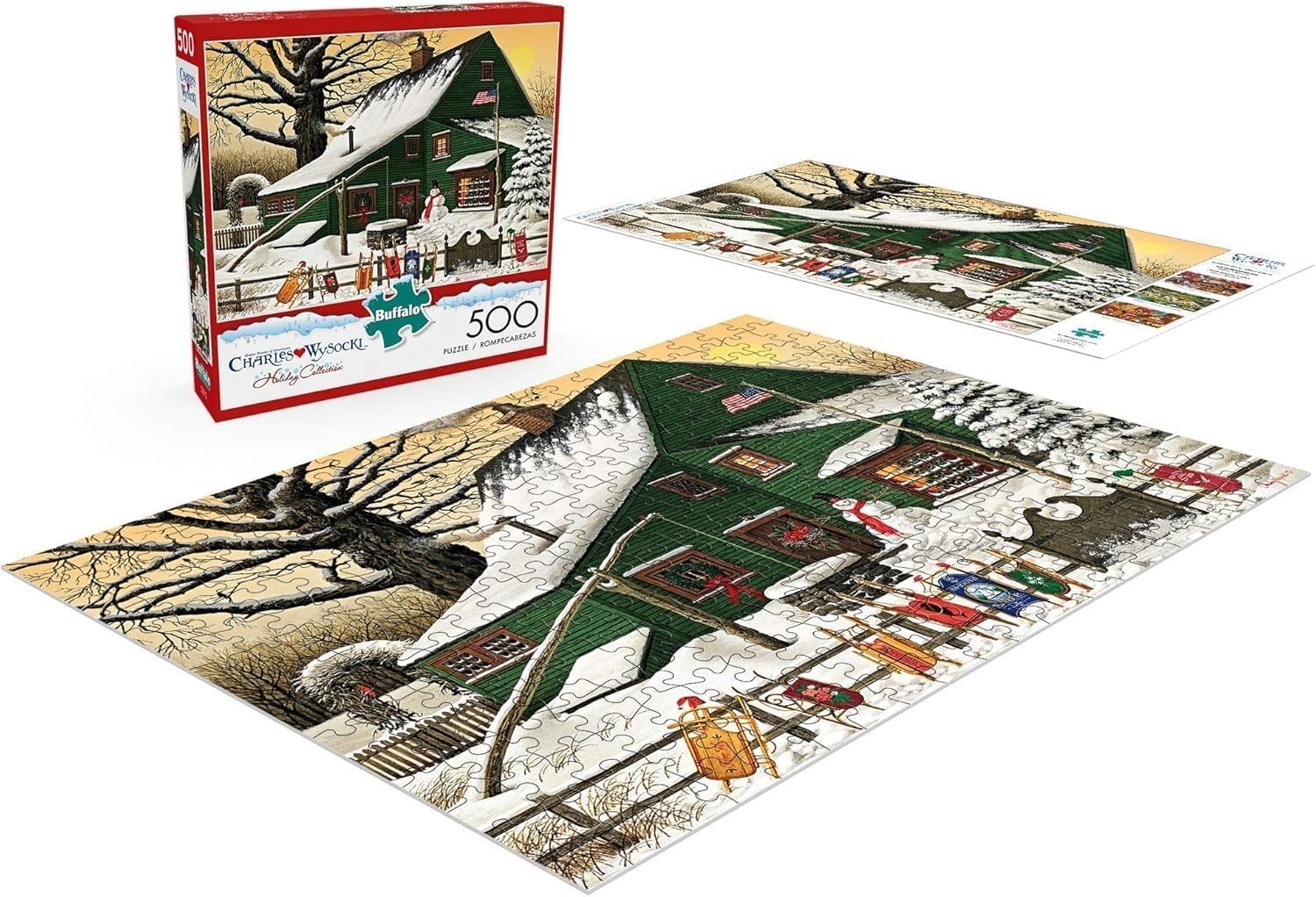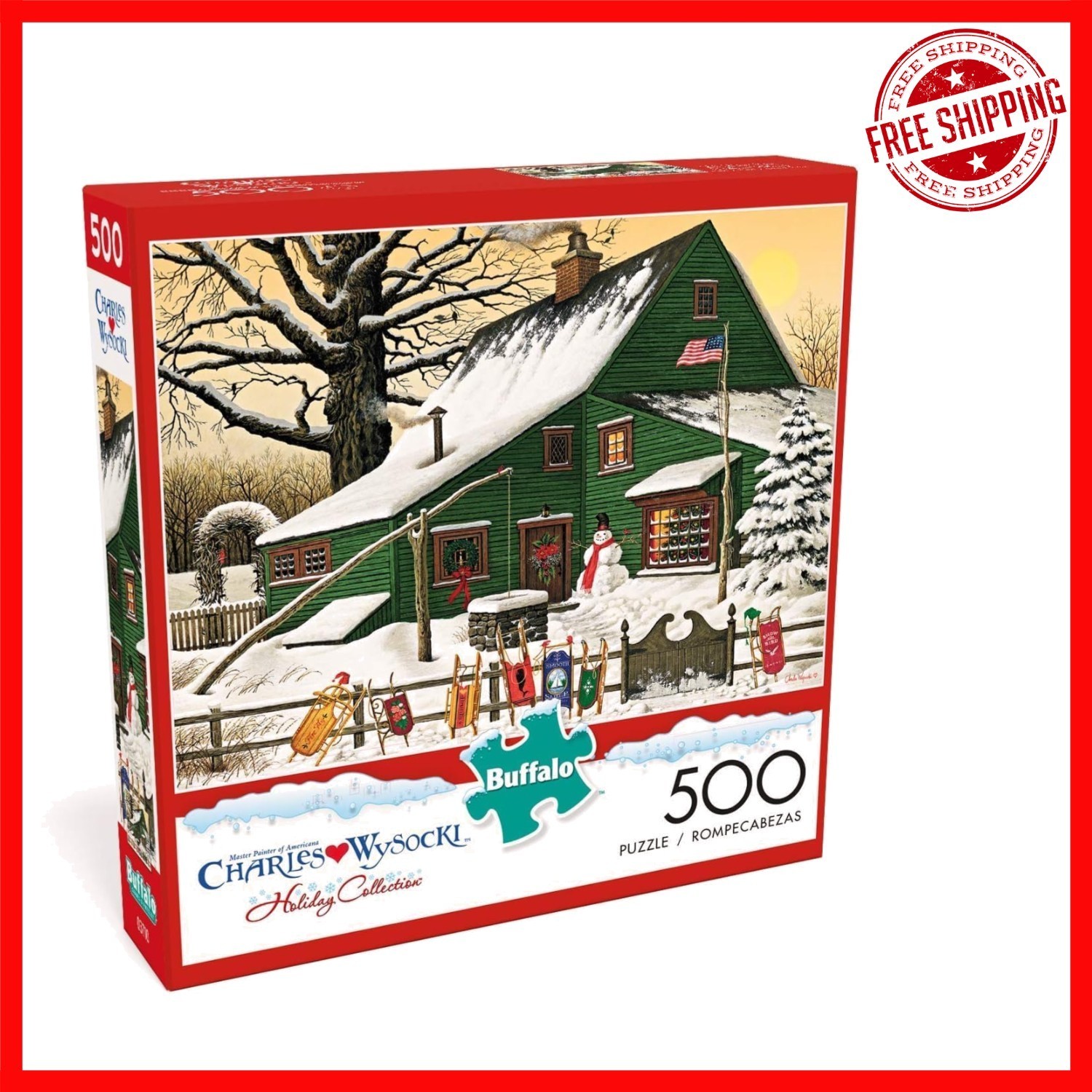 Discover the high-quality charm of our 500-piece jigsaw puzzle from Buffalo Games' Americana Collection, featuring the colorful artwork of Charles Wysocki. Crafted with sturdy puzzle board and interlocking pieces that snap together securely, this puzzle offers a satisfying building experience. Measuring 21.25" x 15", it includes a full-color reference poster to guide assembly and strengthens focus and relaxation for solo or group enjoyment. Ideal as a thoughtful gift or a fun family activity, it promotes mental well-being and quality time. Proudly made in the USA using 100% recycled paperboard, each puzzle ensures durability and an eco-friendly experience.