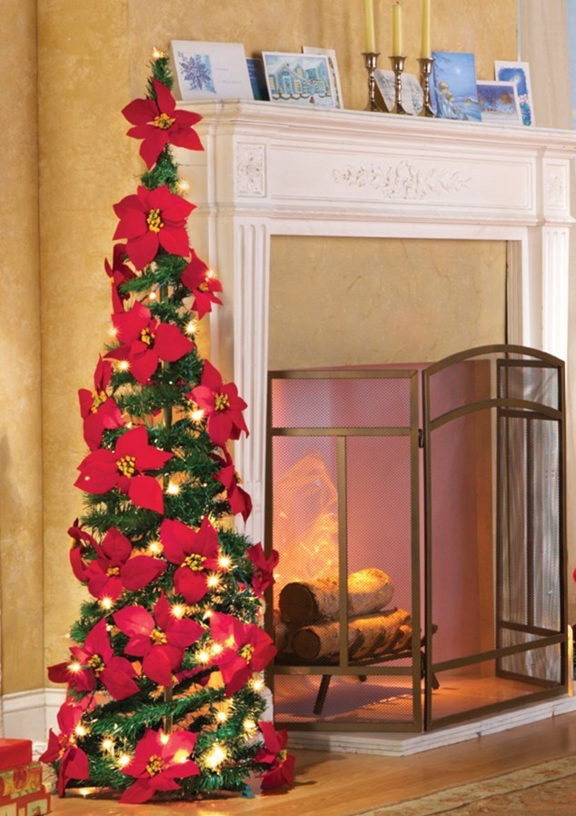 - 52"H Lighted Red Poinsettia Pull Up Collapsible Christmas Tree Holiday Decor