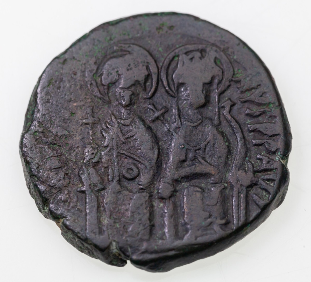 565-578 Byzantine Emp, Justin II & Sophia AE Follis, RY 6