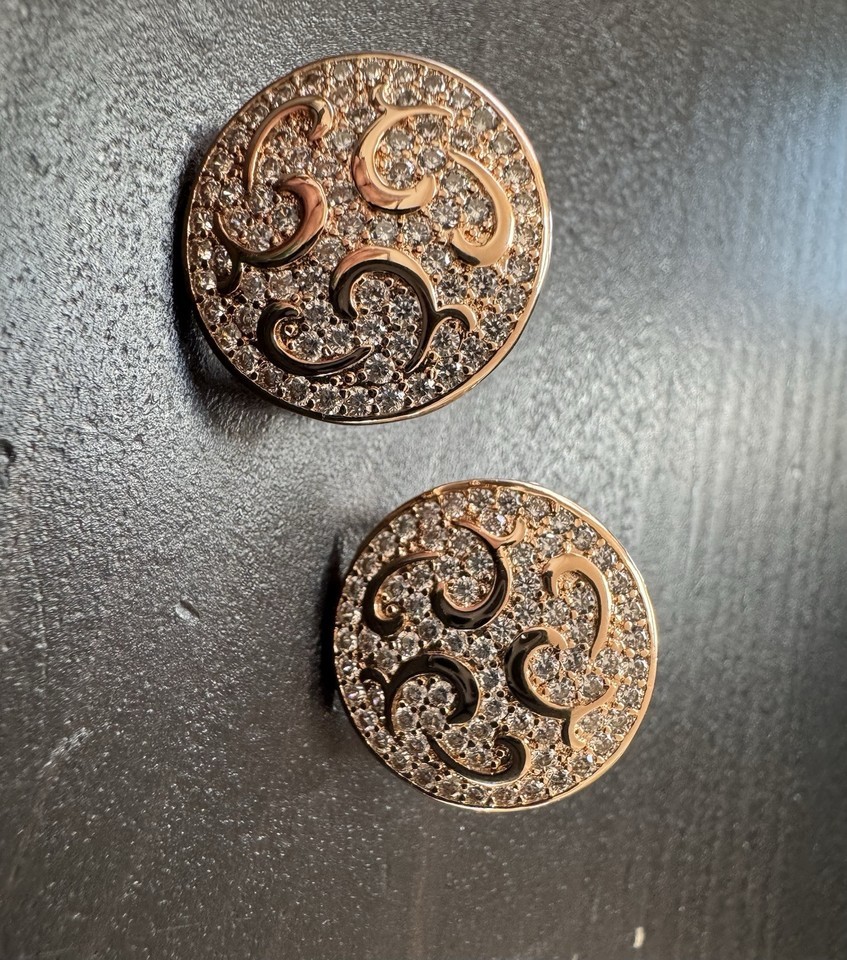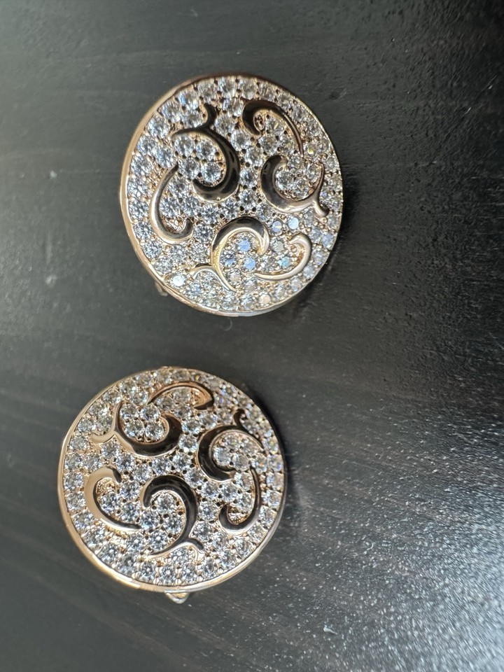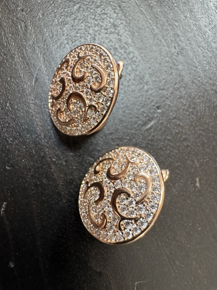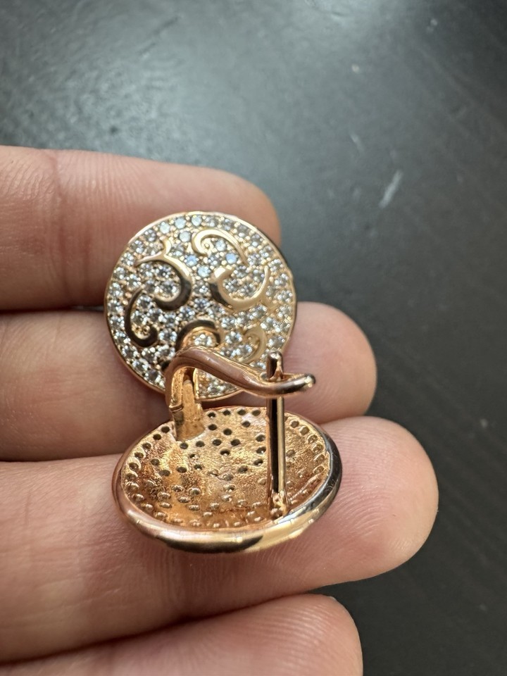 585 14K RG Stamped Gold Medallion Shield Zircon Stud Earrings