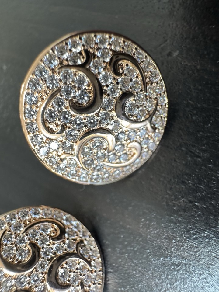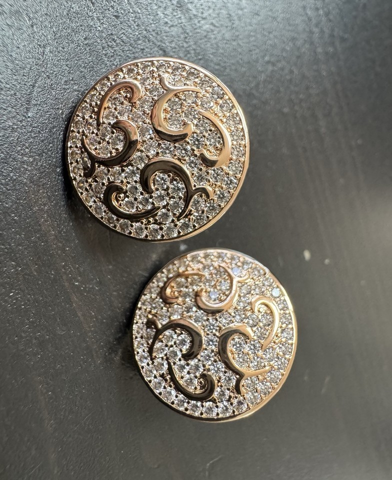 - 585 14K RG Stamped Gold Medallion Shield Zircon Stud Earrings