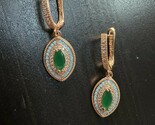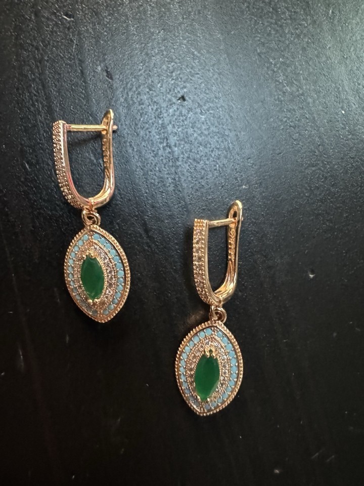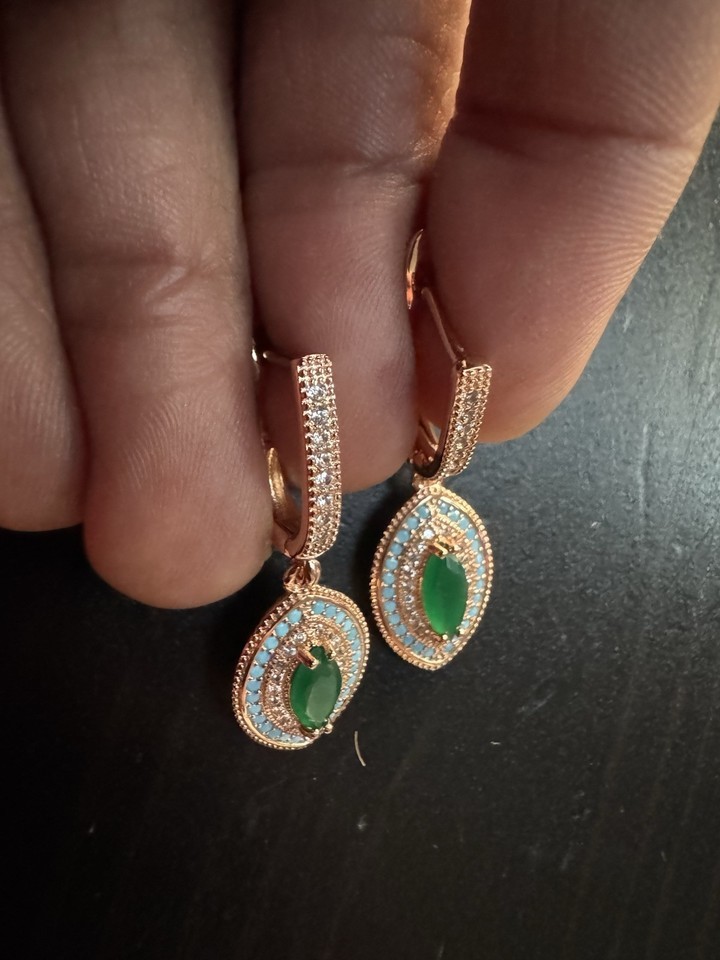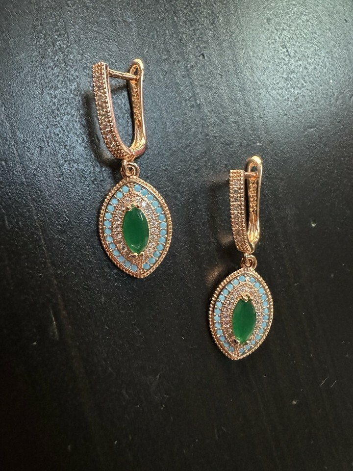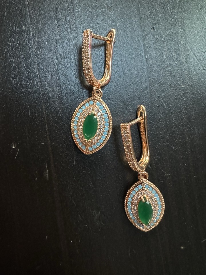 - 585 14K RG Stamped Green Oval Blue Istanbul Dangle Stud Earrings