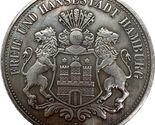 Su un lato della medaglia, troverai il maestoso stemma della citta anseatica di Amburgo, accompagnato dalla scritta "FREI UND HANSESTADT HAMBURG", che sottolinea l'importanza storica e l'indipendenza della citta come entita libera e anseatica. Il retro mostra con orgoglio lo stemma imperiale tedesco, caratterizzato dall'iconica aquila a due teste, accanto alla scritta "DEUTSCHES RICH 1896" e alla denominazione "CINQUE MARCHI". Questo simbolo emblematico rappresenta un'epoca cruciale nella storia tedesca, racchiudendo lo spirito dell'Impero tedesco dal 1871 al 1918.