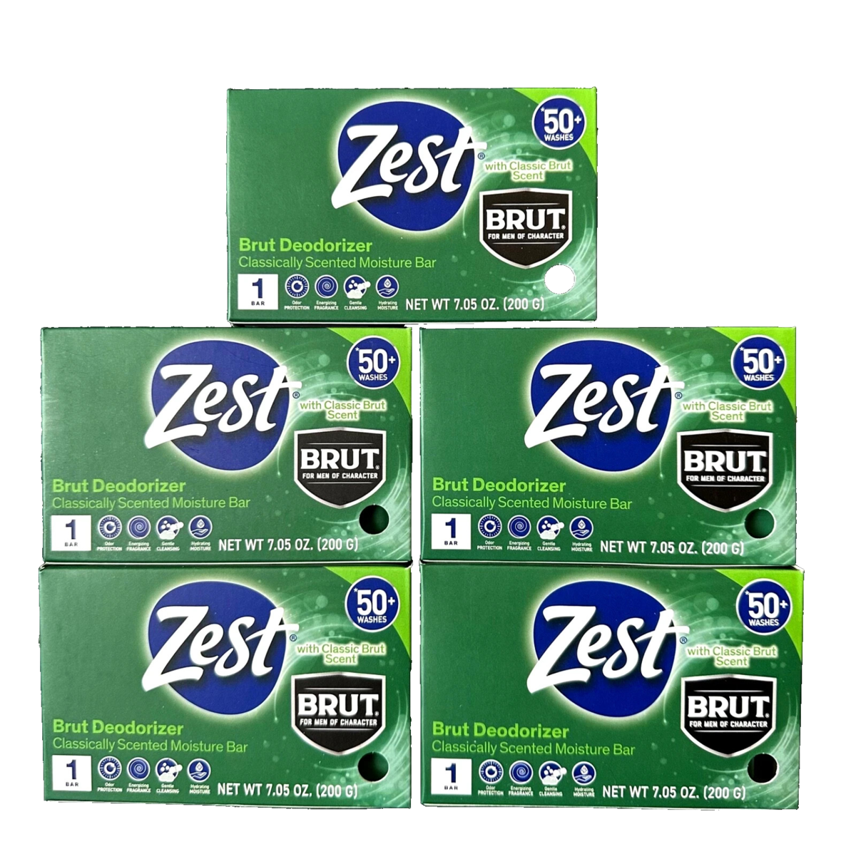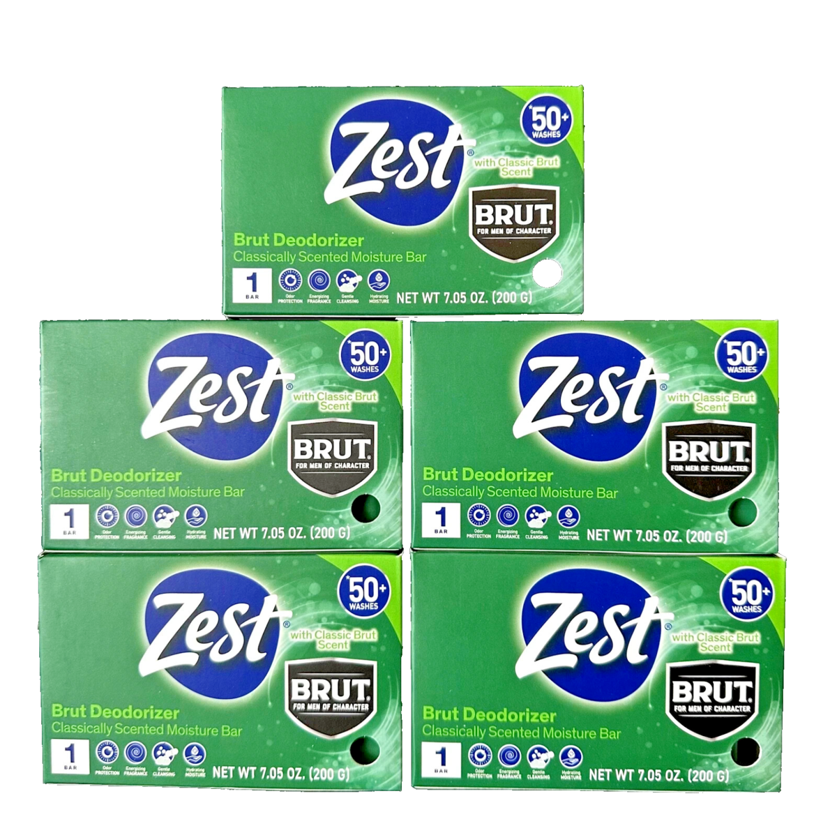 - 5x ZEST BRUT BARS DEODORIZER CLASSICALLY SCENTED MOISTURE SOAP BAR 50+ WASHES Ea