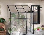 6.3 ft x 4.1 ft Outdoor Polycarbonate Lean-to Greenhouse with Black Metal Frame Protect plants from cold, wind, rain, UV, and wild animals 4mm twin-wall polycarbonate sheets and a powder-coated aluminum alloy frame The lean to design can get support from existing structures Includes a foundation Sliding door allows easy access to your plants and makes maintenance hassle-free Five-level adjustable roof vent for fresh air circulation and humidity control Built-in gutter system for effective drainage and rainwater collection Slide-in-slot assembly, we recommend 2-3 people aid in the assembly process Color: Black, Clear Materials: Aluminum Alloy, Polycarbonate Package Includes: 1 x Polycarbonate Greenhouse 1 x Manual