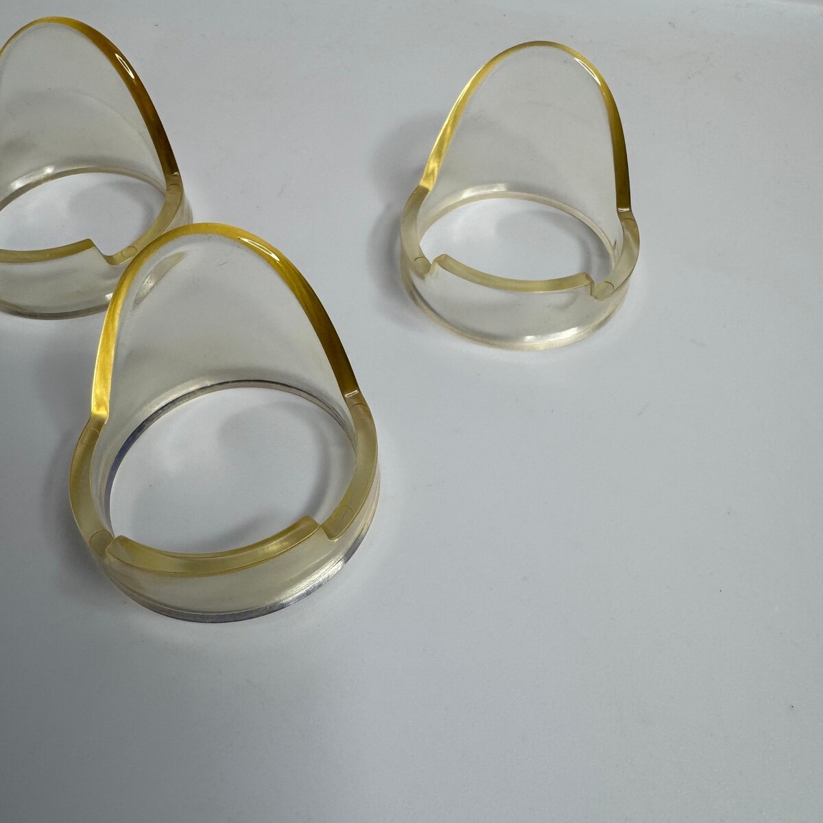 HAS YELLOWING FROM AGE Measurements: ? Diameter: Approximately 2 inches Keywords: acrylic holders, plastic stands, table decor, centerpiece supplies, event decor, party supplies, clear, decorative holders, paperweights