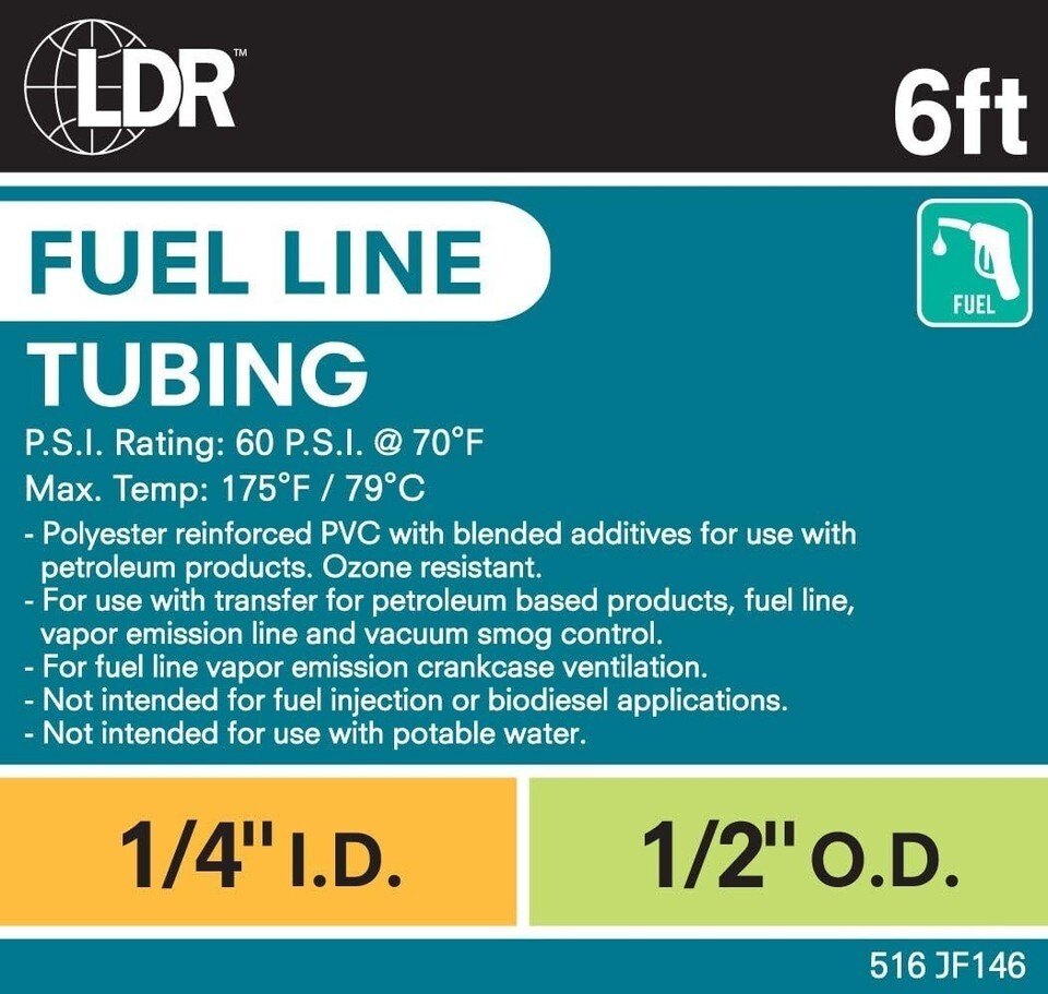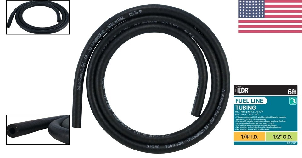 6-Foot Rubber Fuel Line Hose for Small Engines - 1/4 Inch ID, 1/2 Inch OD ? ? ? ? ? ? ? ? ? ? ? ? 6-Foot Rubber Fuel Line Hose for Small Engines - Ideal for the transfer of petroleum products, fuel lines, vapor emission lines, and vacuum smog control. - Dimensions: 1/4 Inch ID (0.64 CM), 1/2 Inch OD (1.27 CM). - Custom extra-long 6 Foot Length (1.82 M) can be cut to size for all your applications. Features: American-made high-quality rubber hose. Max pressure rating of 60 PSI @ 70 F. Max temperature tolerance of 257F/93C. Versatile use for mowers, tractors, snow blowers, dirt bikes, and almost all small engines. Ideal as a replacement hose for any small engine fuel needs. Benefits: Durable and reliable for effective fuel transfer. Customizable length to fit your specific project needs. High-quality materials ensure longevity and resilience. Designed specifically for small engine applications, providing peace of mind during use. Why choose our 6-Foot Rubber Fuel Line Hose? Upgrade your small engine setup with our superior Rubber Fuel Line Hose. Boasting a robust construction with a maximum pressure rating of 60 PSI and heat resistance up to 257F, this hose is made in America to ensure top-quality performance. Its 6-foot custom length offers flexibility and can be easily cut to size, making it versatile for a multitude of applications. Whether you're maintaining mowers, tractors, or other essential engines, our fuel line hose is designed for durability and efficiency. Don?t settle for less when it comes to your equipment?s performance?invest in reliability today with our 6-Foot Rubber Fuel Line Hose! Shipping Free Fast Shipping - We offer free shipping to most of the USA with a normal delivery time of 3-7 days. However, due to the current situation, additional delivery time (up to 3 weeks) may be required for some items. Alternative Carriers - We may use alternative carriers (e.g. USPS, FedEx, UPS, etc.) to ensure your package arrives safely and on time. Due to the use of multiple carriers, we are unable to provide a tracking number automatically. Handling Time - Orders are processed and shipped within 1-2 business days of receiving cleared payment. Shipping Restrictions - Shipping to Alaska, Hawaii, Puerto Rico, Guam, and other US territories may incur shipping charges or delivery restrictions. Please contact us before ordering, or your order can be refunded/cancelled. State Restrictions - There may be restrictions based on your state of purchase. For example, certain items may not be shipped to California due to state regulations. Contact for Tracking Updates - If you require tracking updates or have any concerns about the delivery of your order, please feel free to contact us, and we will be happy to assist you. Return 30-Day Hassle-Free Returns - We want you to be completely satisfied with your purchase. If you are not, you can return the item within 30 days of receiving it for a full refund or exchange. Easy Return Process - To start a return, simply contact us and we will provide you with a prepaid return shipping label and detailed instructions. Restocking Fee - There are no restocking fees for returns. However, the buyer is responsible for return shipping costs if the return is not due to a seller's error. Refund Processing Time - Refunds will be processed within 5 business days of receiving the returned item in its condition. Payment We accept all major credit cards, PayPal, and Apple Pay for your convenience. Your payment information is secure and encrypted to ensure a safe and seamless transaction. Please complete your payment within 3 days of purchase to avoid any delays in shipping. Feedback Your feedback is extremely important to us. We strive to provide the best products and customer service possible. If you are satisfied with your purchase, please take a moment to leave us a positive review. If you have any concerns or issues with your order, please contact us before leaving negative feedback. We are committed to resolving any problems and ensuring your satisfaction. Contact Us If you have any questions or concerns, please feel free to out to our customer support team. You can contact us through the messaging system. We are available Monday to Friday, 9:00 am to 5:00 pm EST, and we will do our best to respond to your inquiry within 24 hours. Buy it now and enjoy a pleasant shopping experience! MPN: Fuel_Line_for_Small_Engines Model: Fuel Line for Small Engines Compatible Vehicle Type: Cars,Trucks Motorcycles,Mowers,Tractors,Snow Blowers,Dirt Bikes,Generators Compatible Fuel Type: Gasoline Features: Extra Long 6 Foot Length,Cut to Size,American Made,High Quality Rubber,Max 60 PSI @ 70 F,Max Temperature of 257F/93C Compatible Scale: 1:1 Age Level: 17 Up Type: Fuel Line
