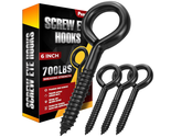 - 6" Heavy Duty Black Screw Eyes, 700LBS Strength, 4PCS Eyelet Hooks