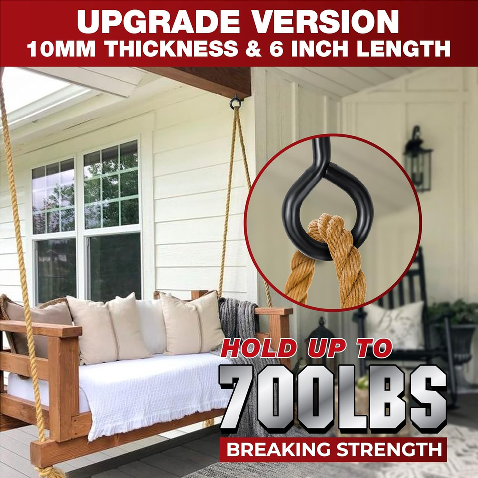 UPGRADE VERSION MORE LOAD CAPACITY: Our 6-inch Heavy Duty Black Screw Eyes are engineered for superior strength, boasting a remarkable load capacity of up to 700 lbs. Crafted with a 10mm thickness and an exceptional length, these eyelet hooks provide unparalleled durability and stability, ensuring they can withstand heavy-duty applications without compromising safety. The robust material used in their construction guarantees longevity and reliability, making them an essential addition to your toolkit.