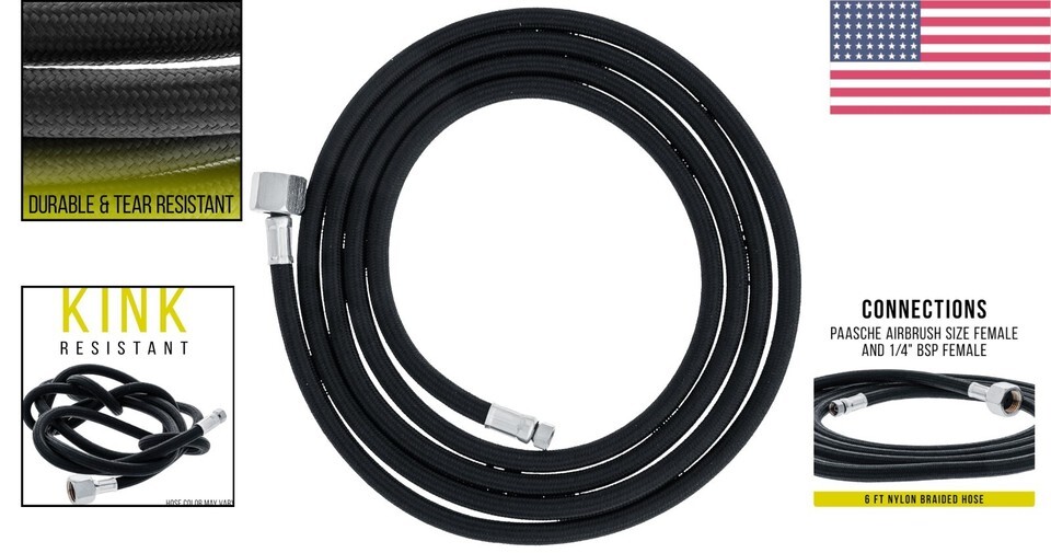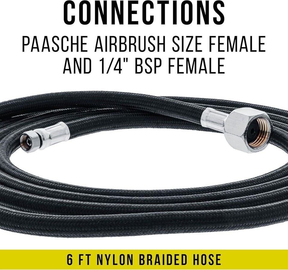 6' Nylon Braided Airbrush Hose for Paasche with 1/4" Fitting - Genuine Quality