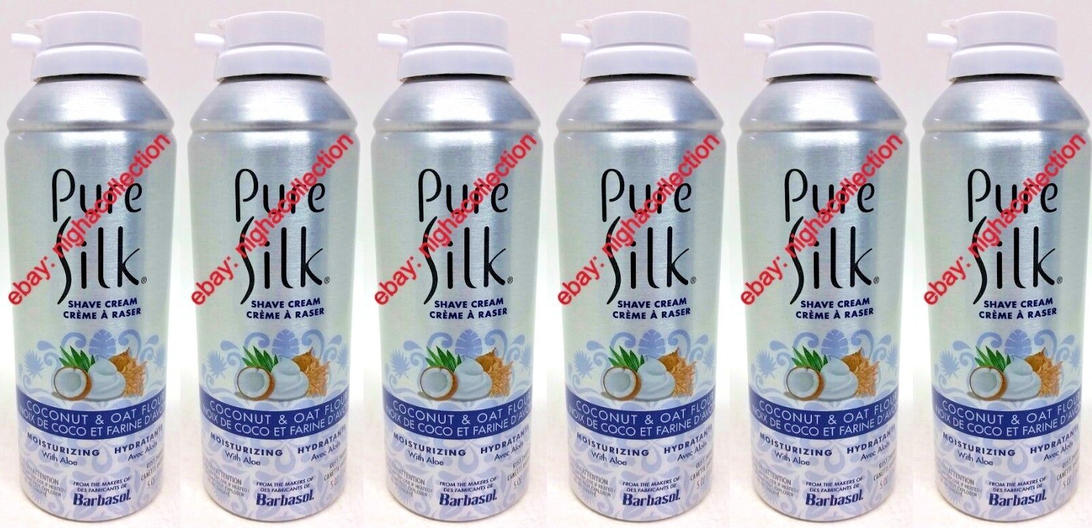 - 6 PACKS Pure Silk Shave Cream Coconut & Oat Flour Soothes Skin 5 oz (142g) Each