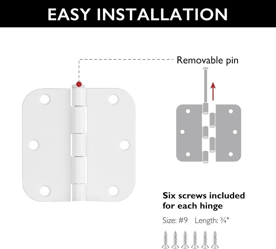 ? Easy to Install: Comes with mounting screws; the removable pin allows for door removal without unscrewing the entire hinge.