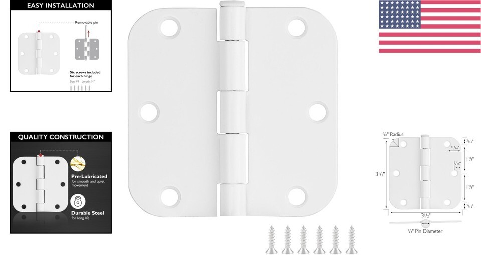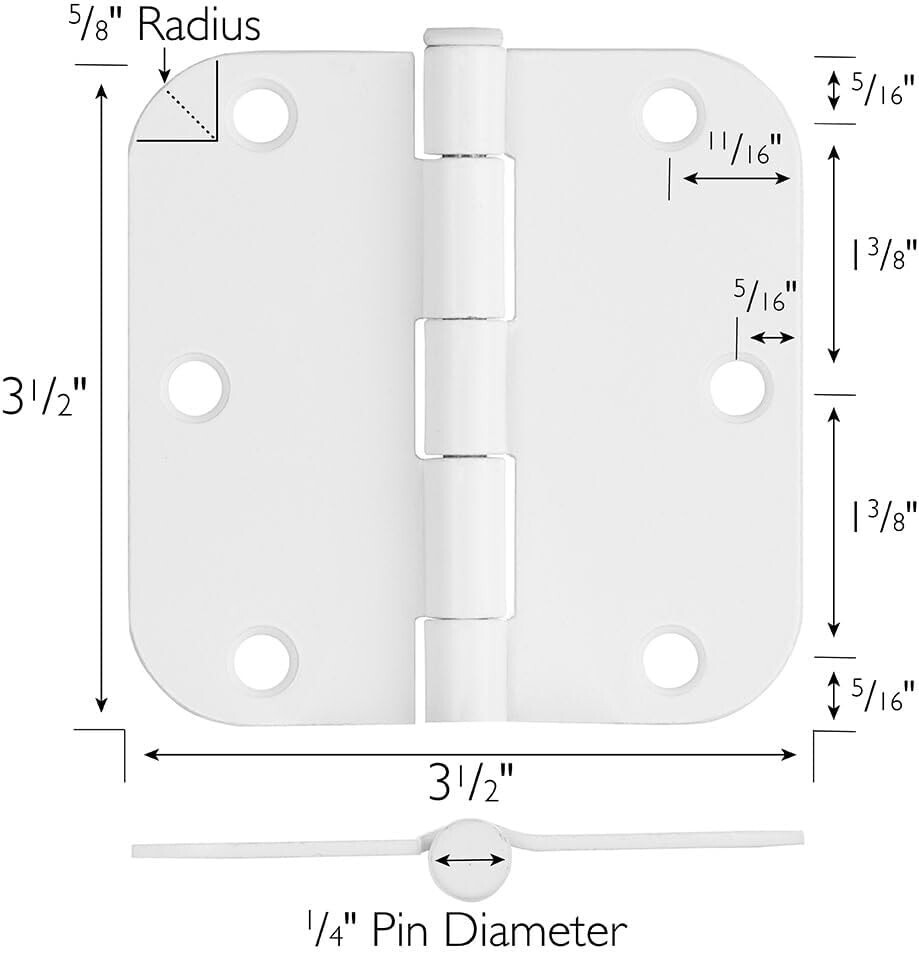 - 6-Pack 3.5-Inch Standard Door Hinges - Durable White Steel with Mounting Screws