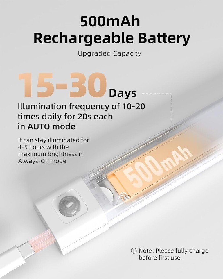 - 6-Pack 30 LED Rechargeable Under Cabinet Lights - Versatile Motion Sensor Design