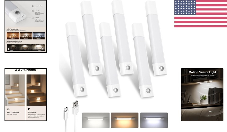 6-Pack 30 LED Rechargeable Under Cabinet Lights - Versatile Motion Sensor Design