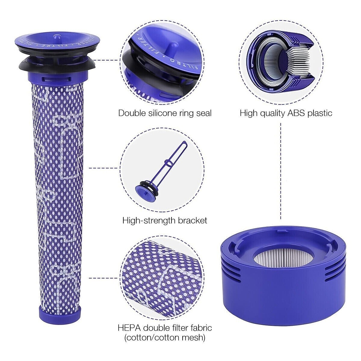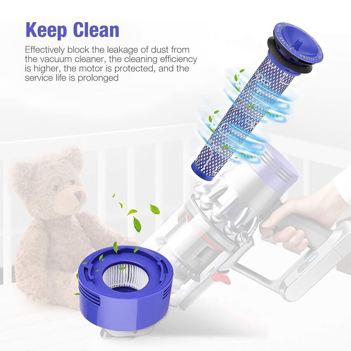 Highly Efficient Filtering: The premium pre-filters and post-filters can effectively filter dust, etc., prevent large particles of dust from entering the motor, ensure a long life for Dyson vacuum cleaner.. It?s recommended to replace the filter once every 2-3 months, or dependent on usage.