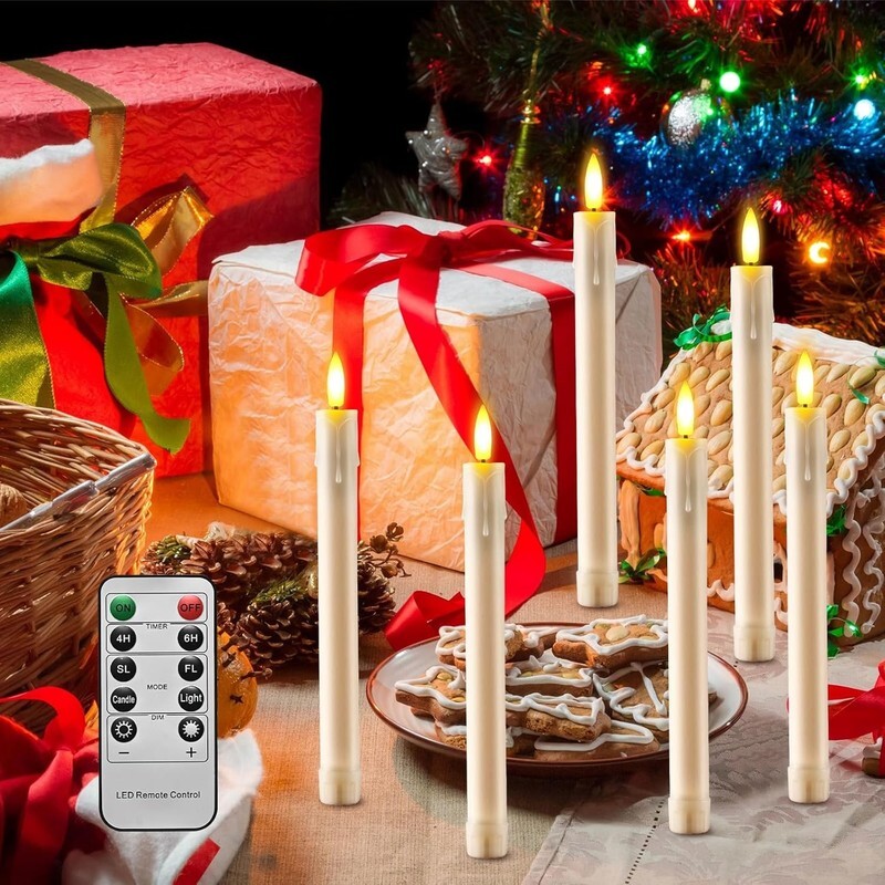 6 Pack Flameless Candles with Remote Control Timer, Flickering LED Taper Candles