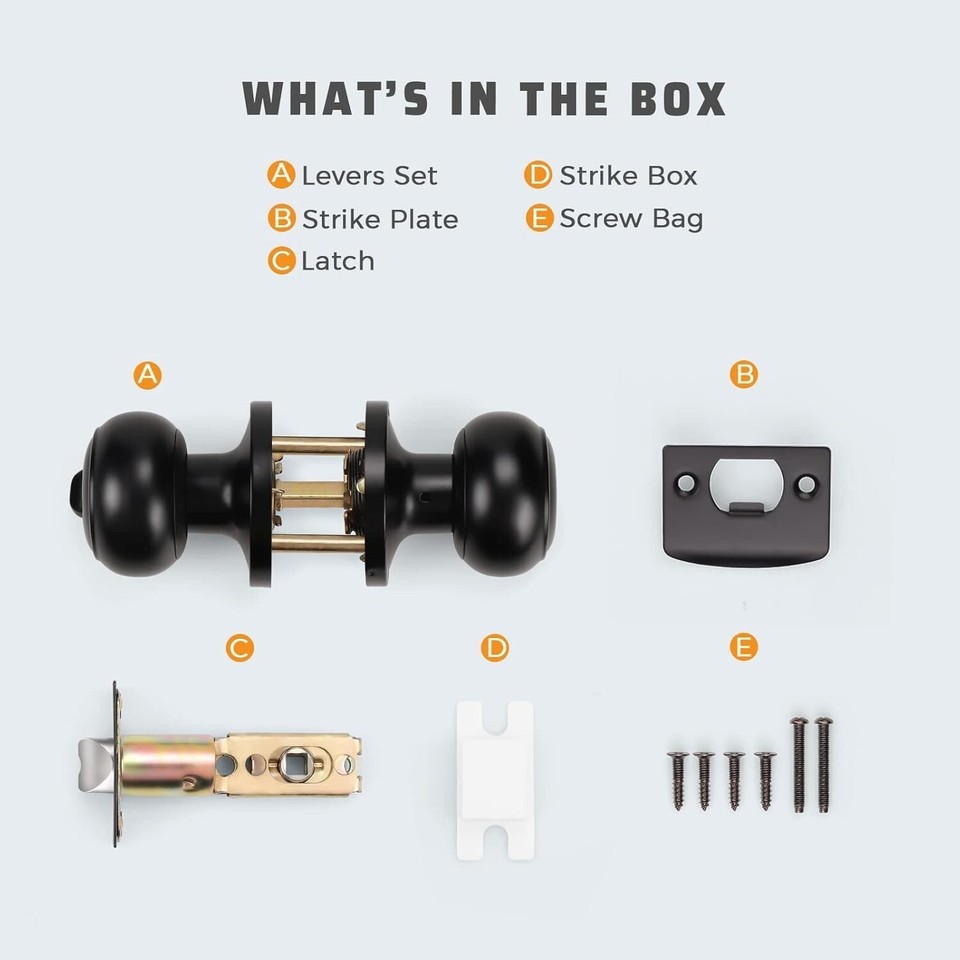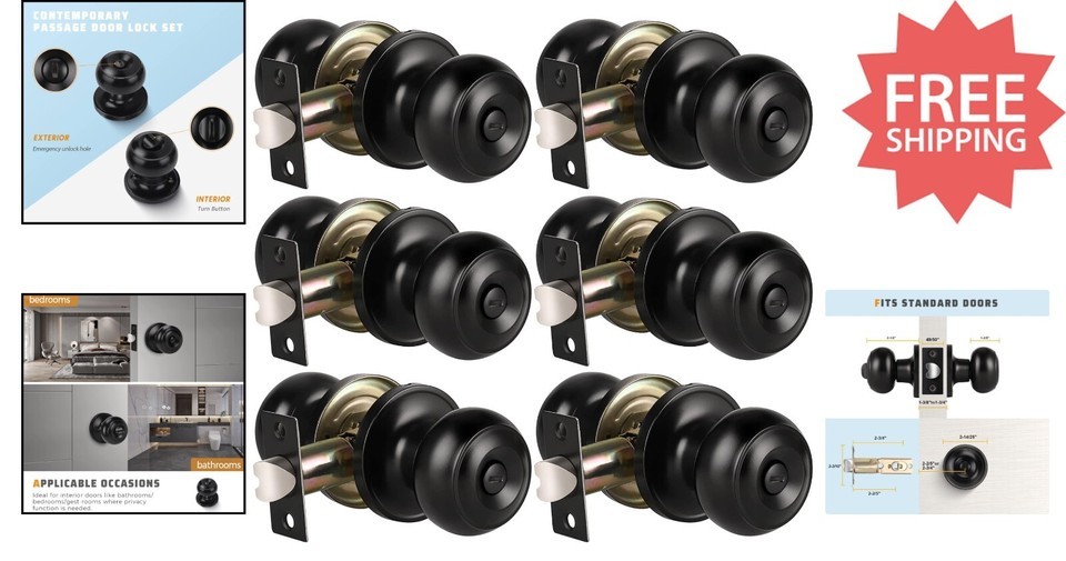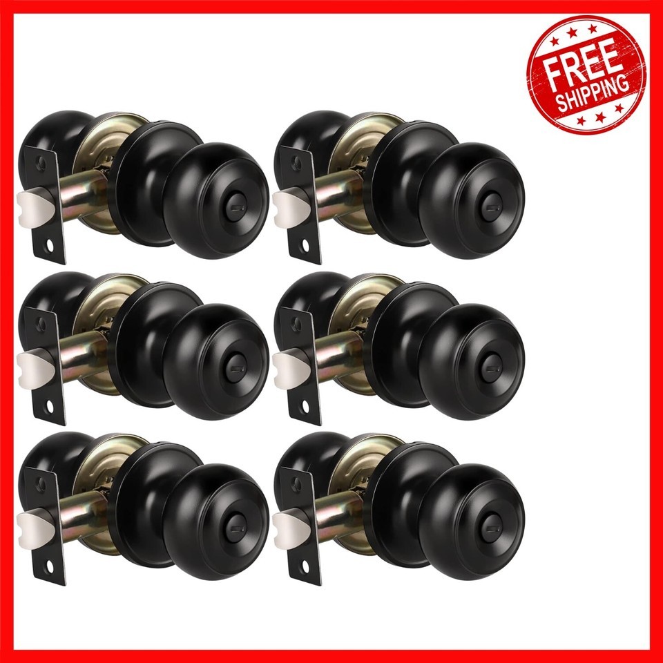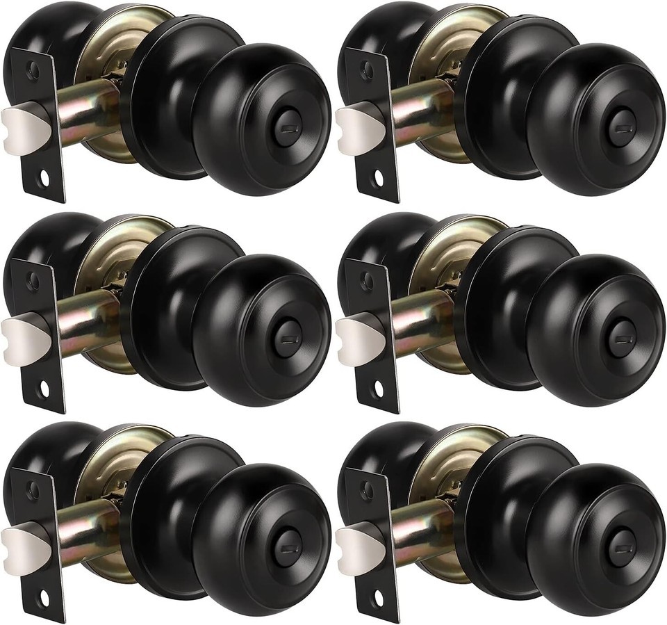 - 6 Pack Keyless Matte Black Privacy Door Knobs - Perfect for Bathrooms & Bedrooms
