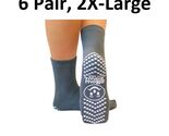 - 6 Pair NON SKID Hospital Slipper Socks Single Tread Unisex Adult 2X-Large, GRAY