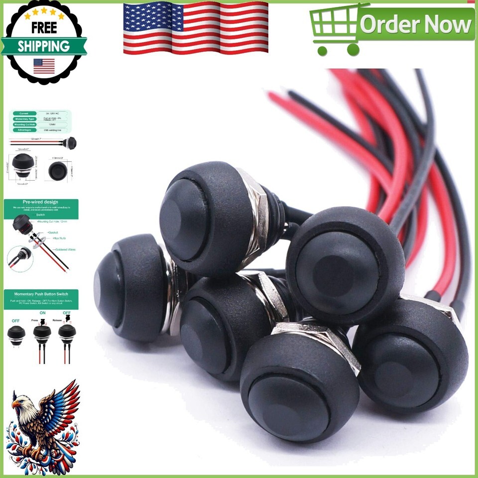 6 Pcs Waterproof 12mm Momentary Push Button Switch with Pre-Soldered Wires