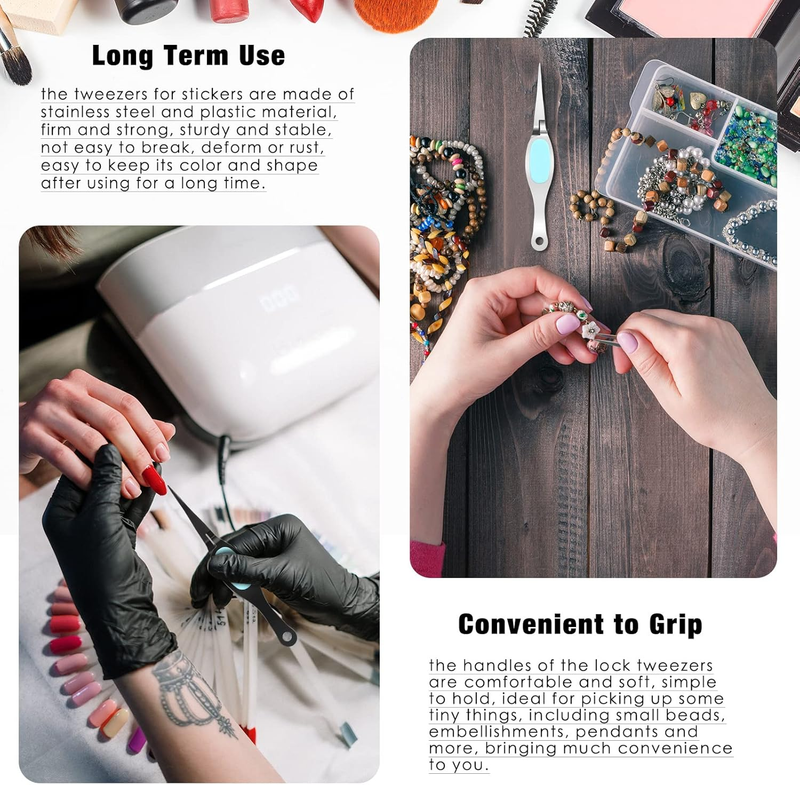 Long Term Use: the tweezers for stickers are made of stainless steel and plastic material, firm and strong, sturdy and stable, not easy to break, deform or rust, easy to keep its color and shape after using for a long time