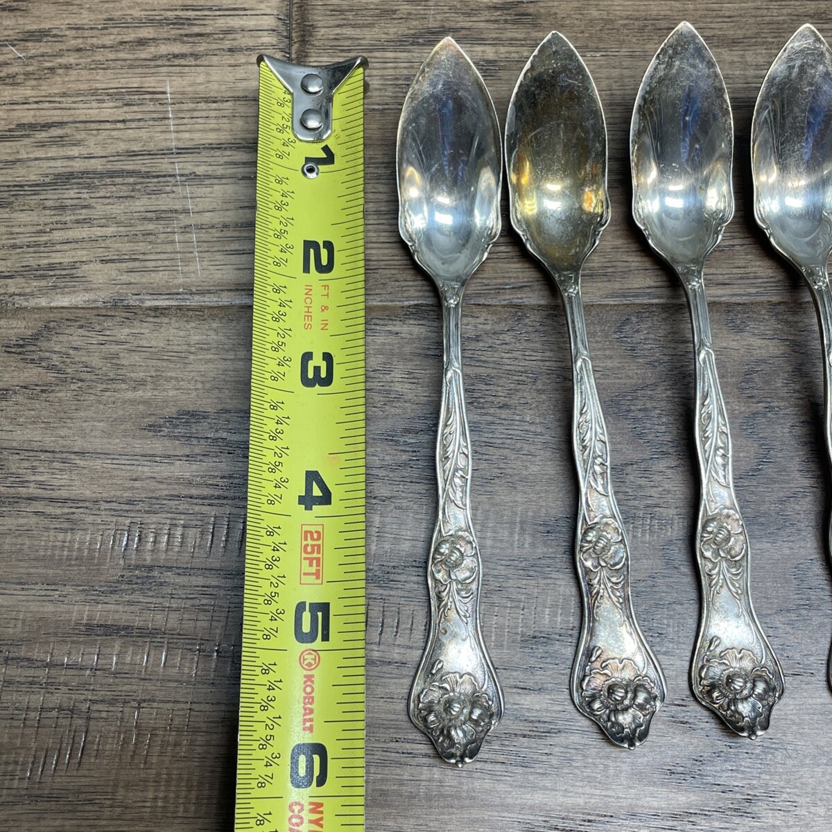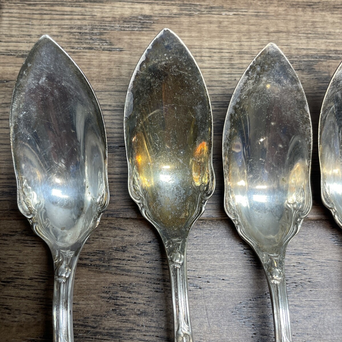 6 Reed & Barton Silver Plated Grapefruit Citrus Spoons Floral Vintage MH JD