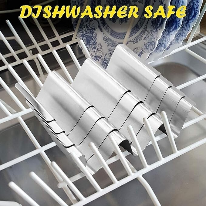 EASY TO CLEAN - Simply toss each tacos holder in the dishwasher and you're done! Its shape makes it stackable after used so it wont take much space.