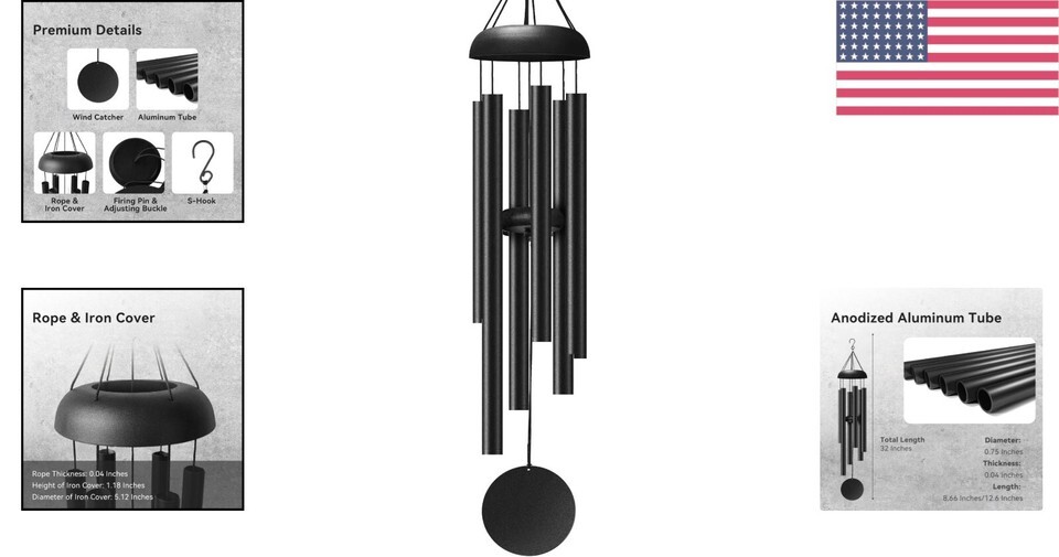 Produces soothing melodies with tube lengths ranging from 8 to 12 inches, enhancing your outdoor ambiance.