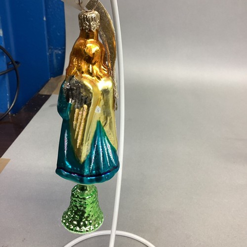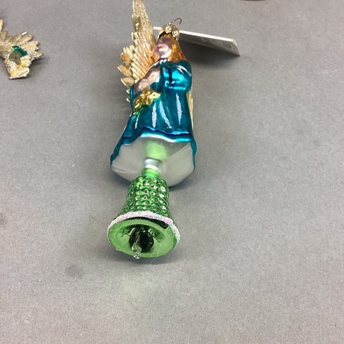 1. Radko angel and bell. Has 1 broken wing. Comes with tag. Measures 5.25?H