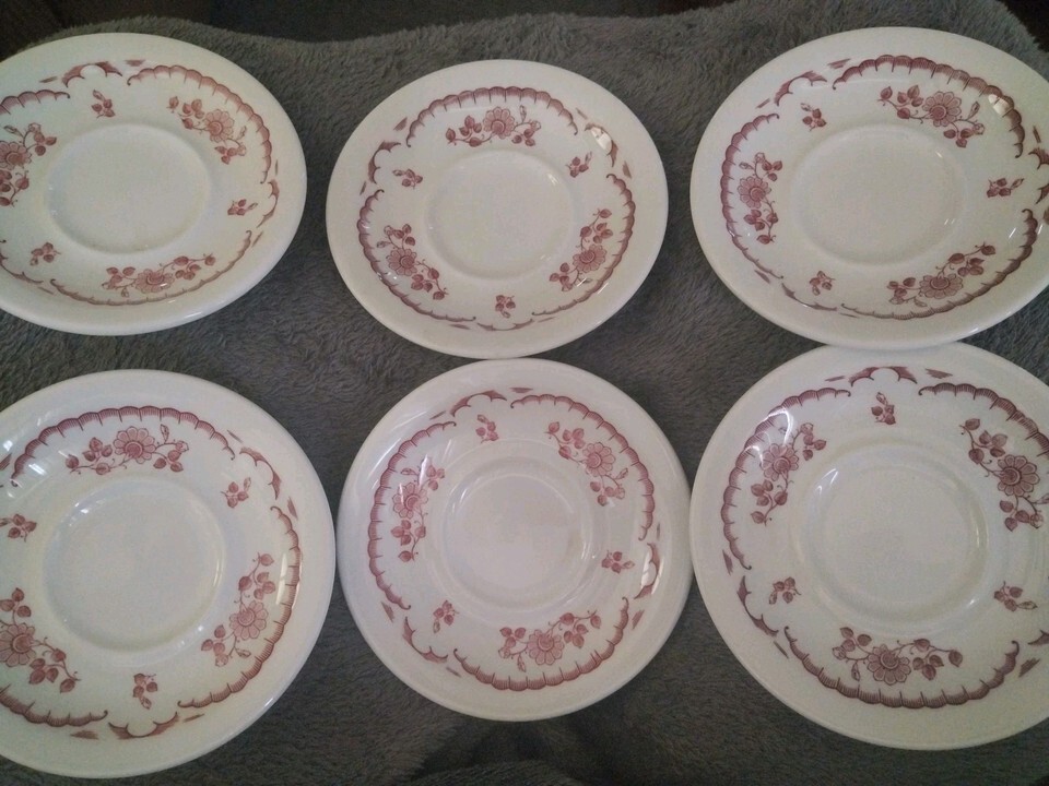 6 Vintage Shenango China USA Restaurant Ware Chardon Rose Red saucers D-23 J-17